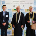 「横浜市仏教会」防災委員長を務める西郊(にしおか)良貴さん(円満寺住職・西区久保町)ら市仏教会の2人も協定書締結の瞬間に立ち会いました。