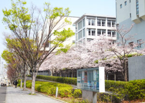 日吉駅前「慶應日吉キャンパス」(第4校舎独立館)の桜(MAP)