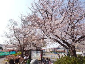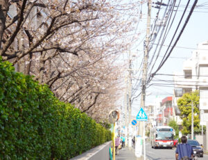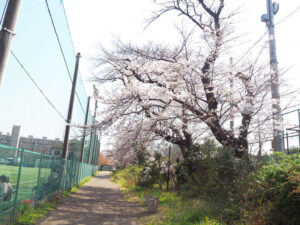 下田町「松の川緑道」の桜(慶應グラウンド付近)(MAP)&下田小学校(MAP)