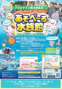 【法人サポーター会員によるPR記事です】アピタテラス横浜綱島の開店8周年記念に関連し、4月4日(土)・5日(日)と翌11日(土)・12日(日)は抽選会や子ども向けイベントなどが企画され、11日と12日には恒例となりつつある水族館イベントも再び行われることになりました。