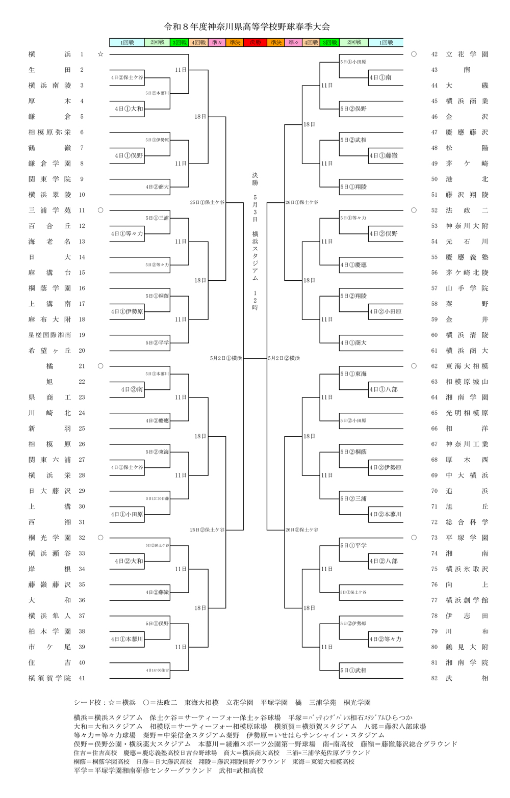 (※)4月3日現在の情報です。試合日程と開始時間は、雨天順延や第一試合の終了時間などによって変更される場合があります。神奈川県高野連の公式サイトなどでご確認ください